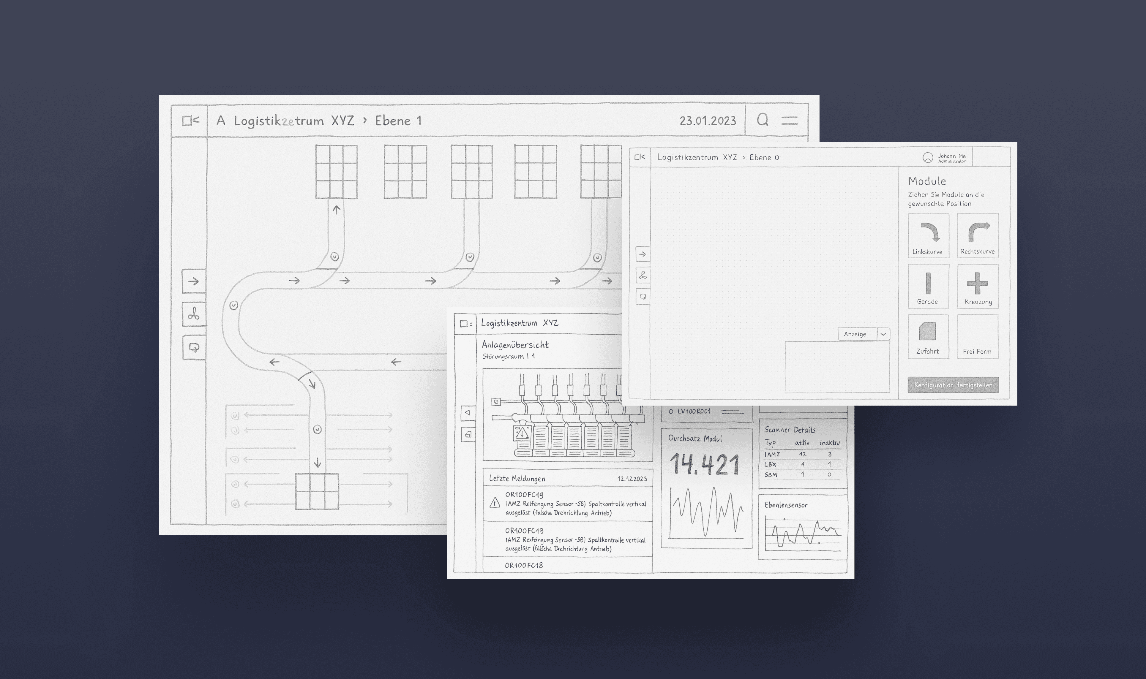 UX Design einer Anwendung, die die Überwachung und Steuerung komplexer Fördertechnikanlagen durch eine besonders intuitive Darstellung ermöglicht.