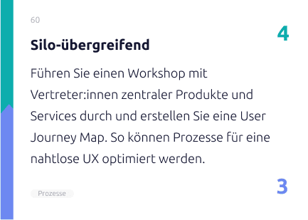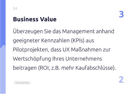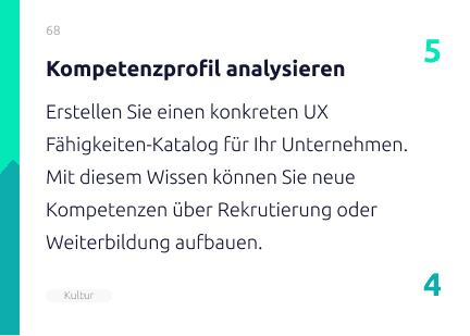 Im zweiten Schritt nutzen Sie die Level Up-Karten des Sets. Sie können aus den 31 konkreten Maßnahmen die Passendsten für Ihr Unternehmen und Team auswählen, um die UX auf das nächste Level zu heben.